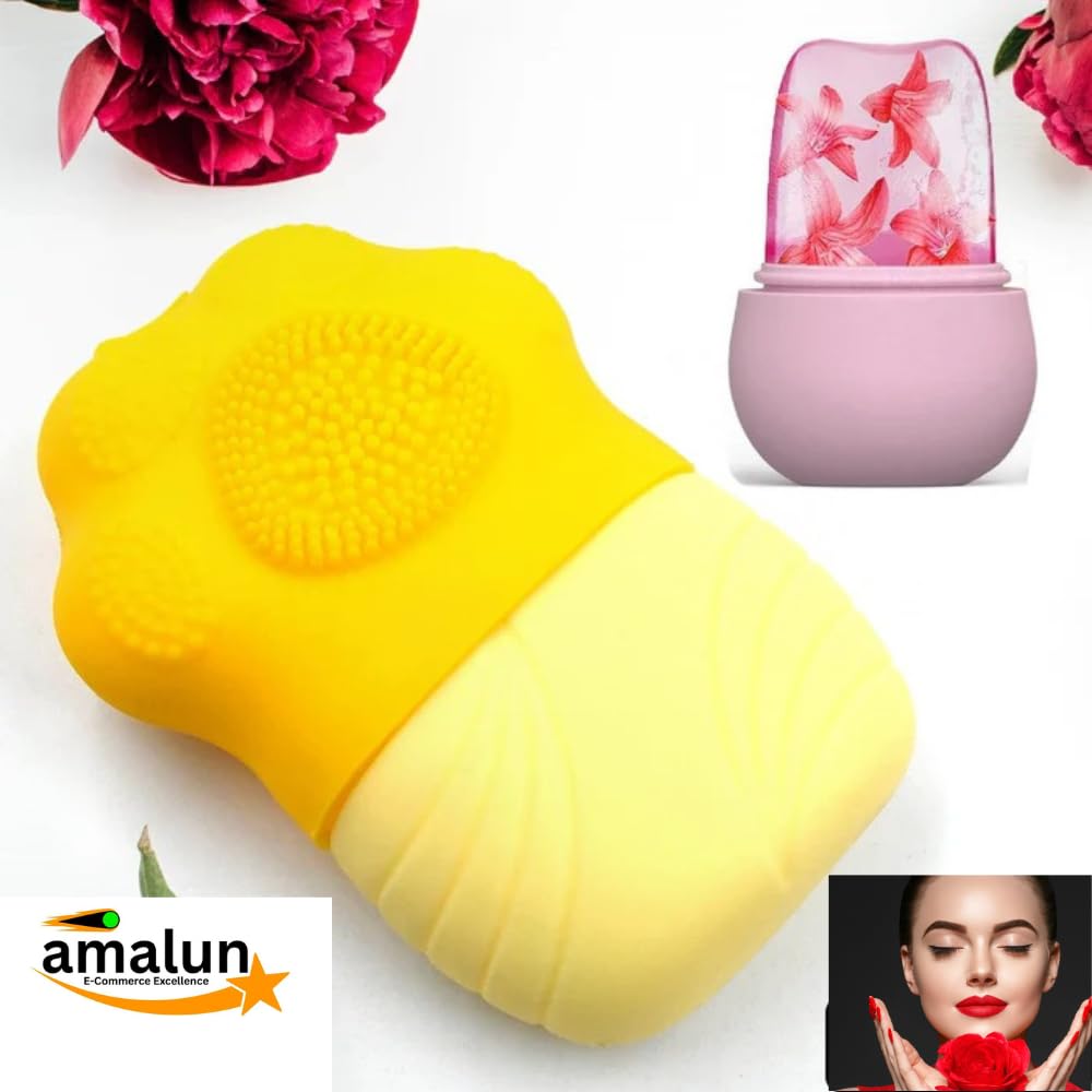 Amalun Ice Roller & Scrubber For Face | Face Massager Elevate your skincare game with the Amalun Ice Roller & Scrubber! This dual-purpose beauty tool combines the benefits of a cooling ice roller and a gentle scrubber to give you glowing, tightened skin. Cool & Calm: The ice roller instantly soothes and reduces puffiness, redness, and irritation, leaving your skin refreshed. Exfoliate & Renew: The reusable silicone scrubber gently exfoliates dead skin cells, promoting a smooth and radiant complexion. Youthful Radiance: Stimulates blood circulation to enhance your natural glow and tighten your skin. Easy to Use: Simply freeze the roller, then use the scrubber for a thorough cleanse. Effortless and convenient! High-Quality & Reusable: Made with premium, eco-friendly materials, ensuring durability and sustainability. Multifunctional Beauty Tool: Perfect for minimizing pores, reducing under-eye circles, and providing a spa-like experience at home. Transform your skincare routine with the Amalun Ice Roller & Scrubber for a radiant, youthful complexion every day! Pain Relief:This ice cream mold relieves bruising, muscle pain, sprains, and strains, and provides standalone massage cooling for optimal relief. 20 minutes per day: use this ice cream mold to massage the affected area up to 20 minutes to reduce swelling, pain and inflammation of the joints and muscles. EASY TO GRIP BASE The base of the massager is easy to grasp to protect your hands from ice damage. Open the lid and hold the base in your hand to use. NON SLIP PATTERN The outside of the ice mode has a textured pattern which offers a non-slip handle. It is also comfortable in the hand. Reusable two piece design: easy to fill and freeze. The ice mode has an interlocking design that separates with a simple spin motion. The ice massager is made of durable silicone.