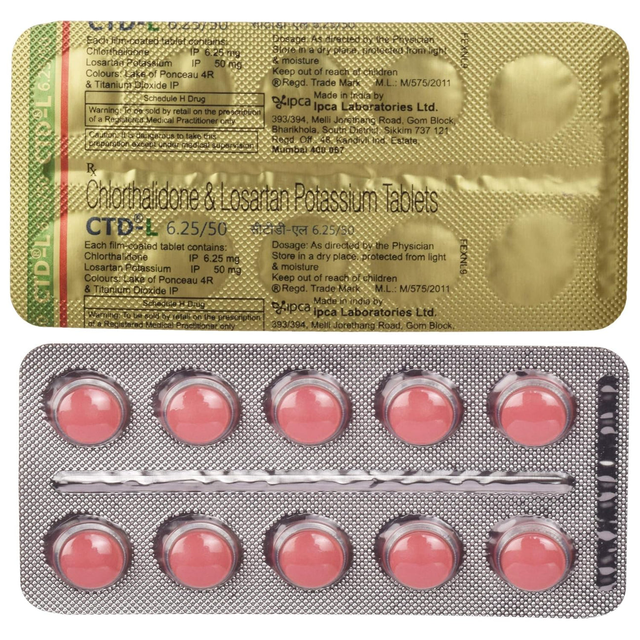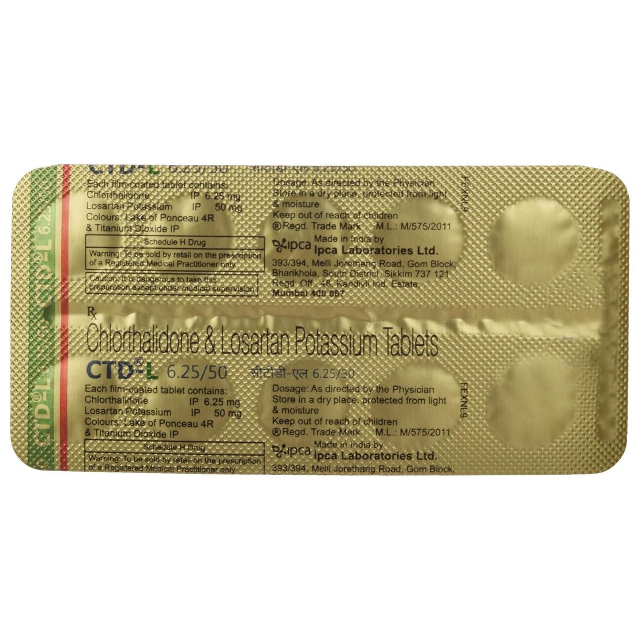 CTD-L 6.25/50 Tablet contains Losartan and Chlorthalidone. Losartan helps relax and widen blood vessels to improve blood flow and lower blood pressure. Chlorthalidone increases urine output to remove excess fluid and salts from the body.