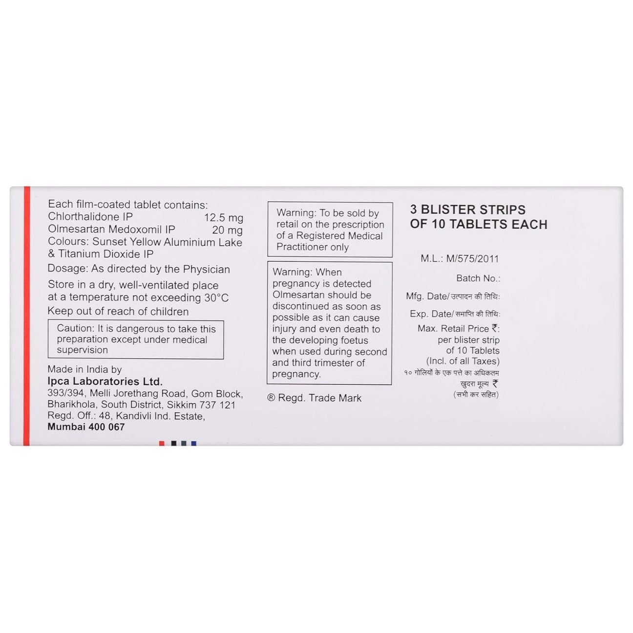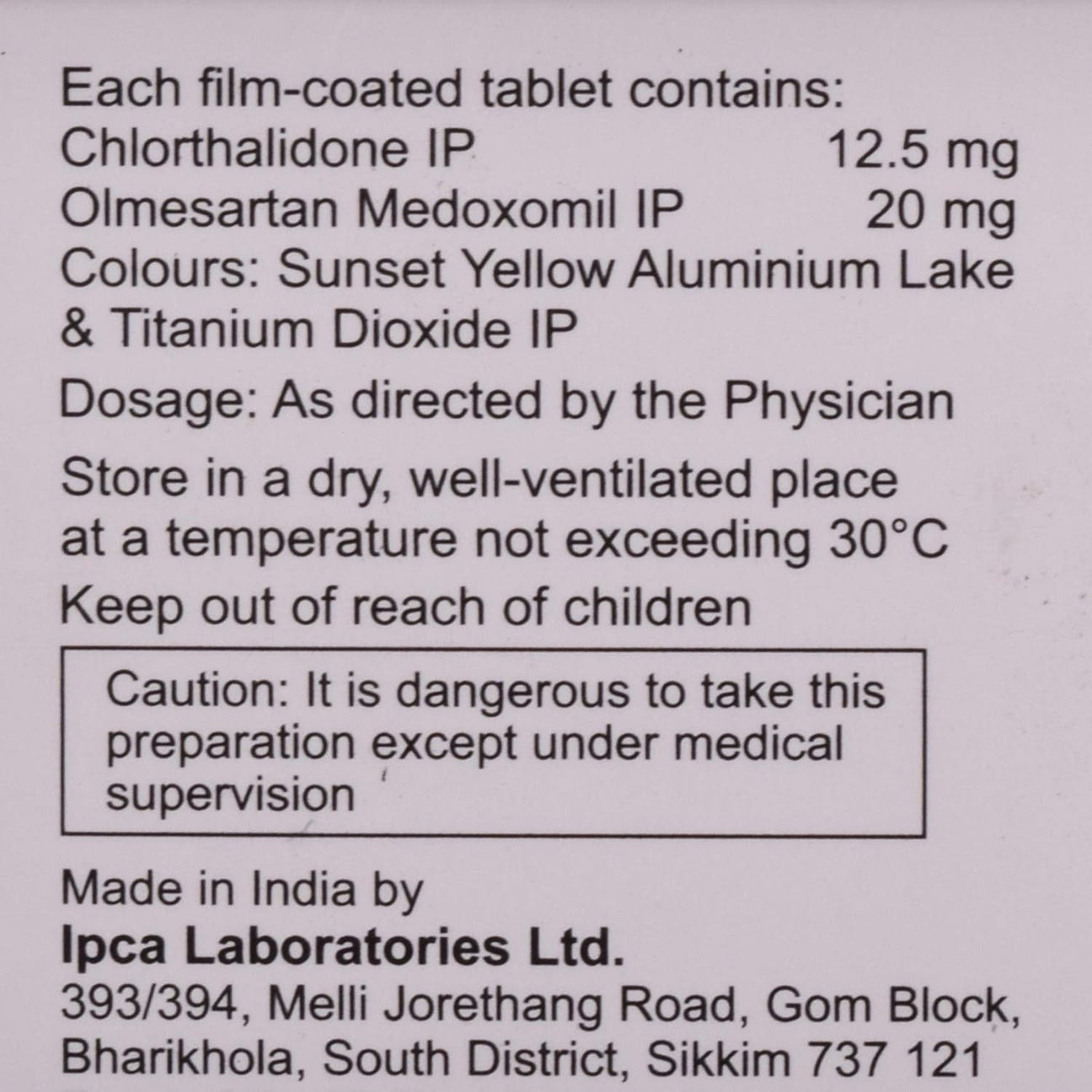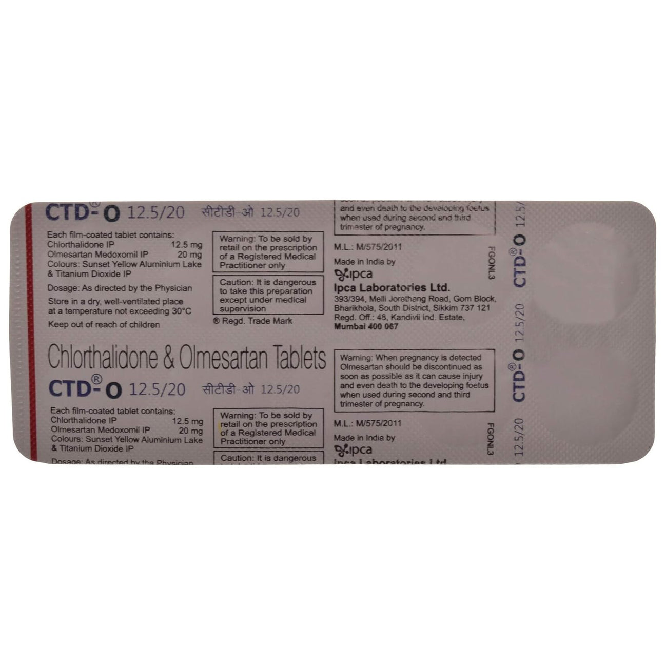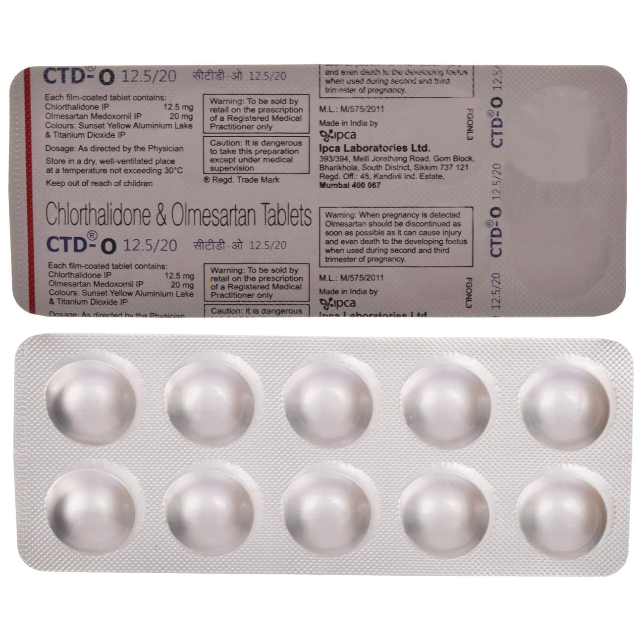 CTD-O 12.5/20 Tablet combines Olmesartan and Chlorthalidone. It is generally used when a single medicine is not sufficient to control blood pressure.