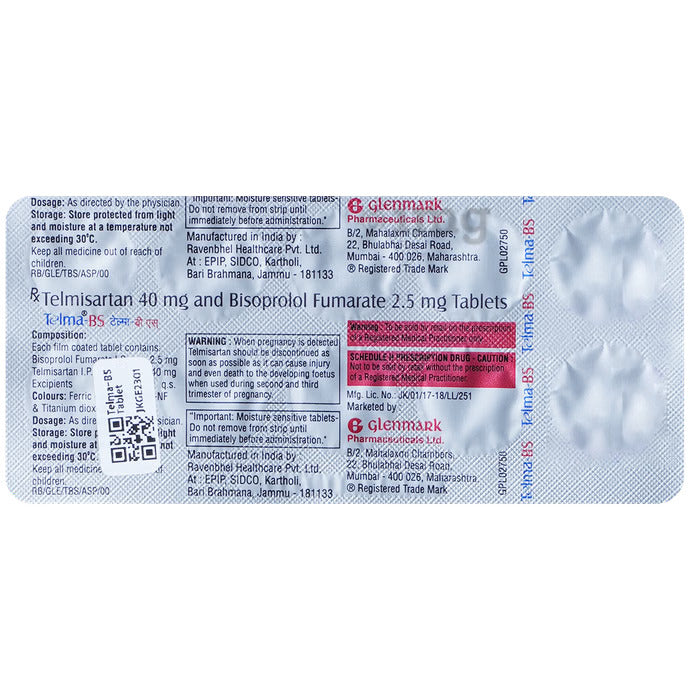 Combination tablet containing Telmisartan 40 mg and Bisoprolol Fumarate 2.5 mg. Used under physician supervision for management of high blood pressure (hypertension). Prescription only.