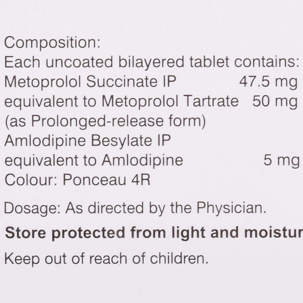 - Metoprolol Succinate IP – 47.5 mg (equivalent to Metoprolol Tartrate 50 mg) as prolonged-release form