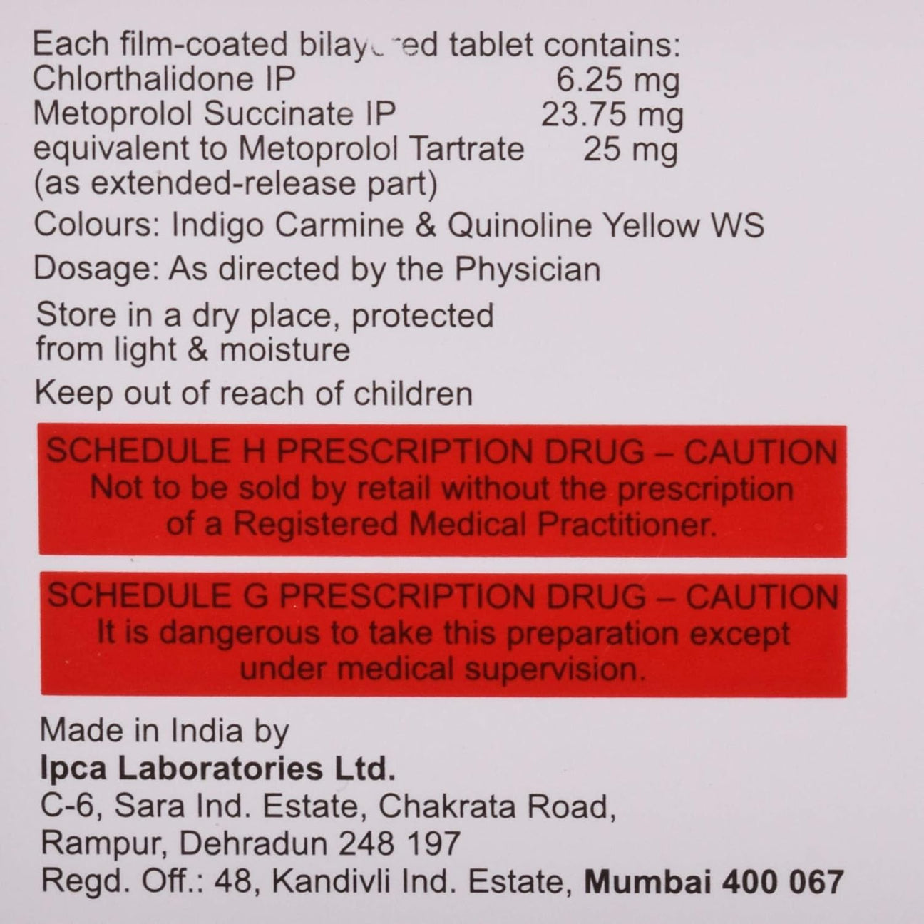 CTD-M 6.25/25 Tablet ER slows the heart rate and makes the heart pump more efficiently. It also increases urine output to eliminate excess water, which lowers blood pressure. Long-term use reduces risk of stroke, heart attack, kidney damage and other serious complications.