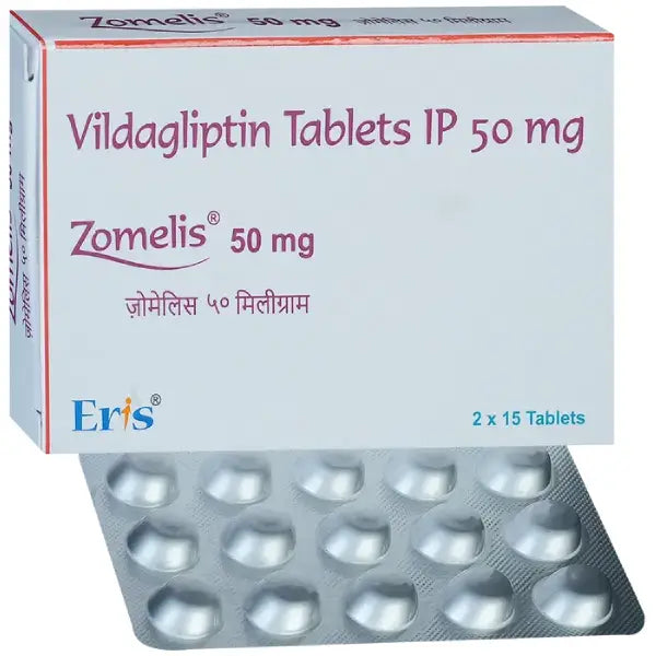 Zomelis 50mg Tablet works by improving insulin release from the pancreas and reducing glucose production in the liver. It belongs to the DPP-4 inhibitor group and helps maintain balanced blood glucose levels after meals and during fasting.