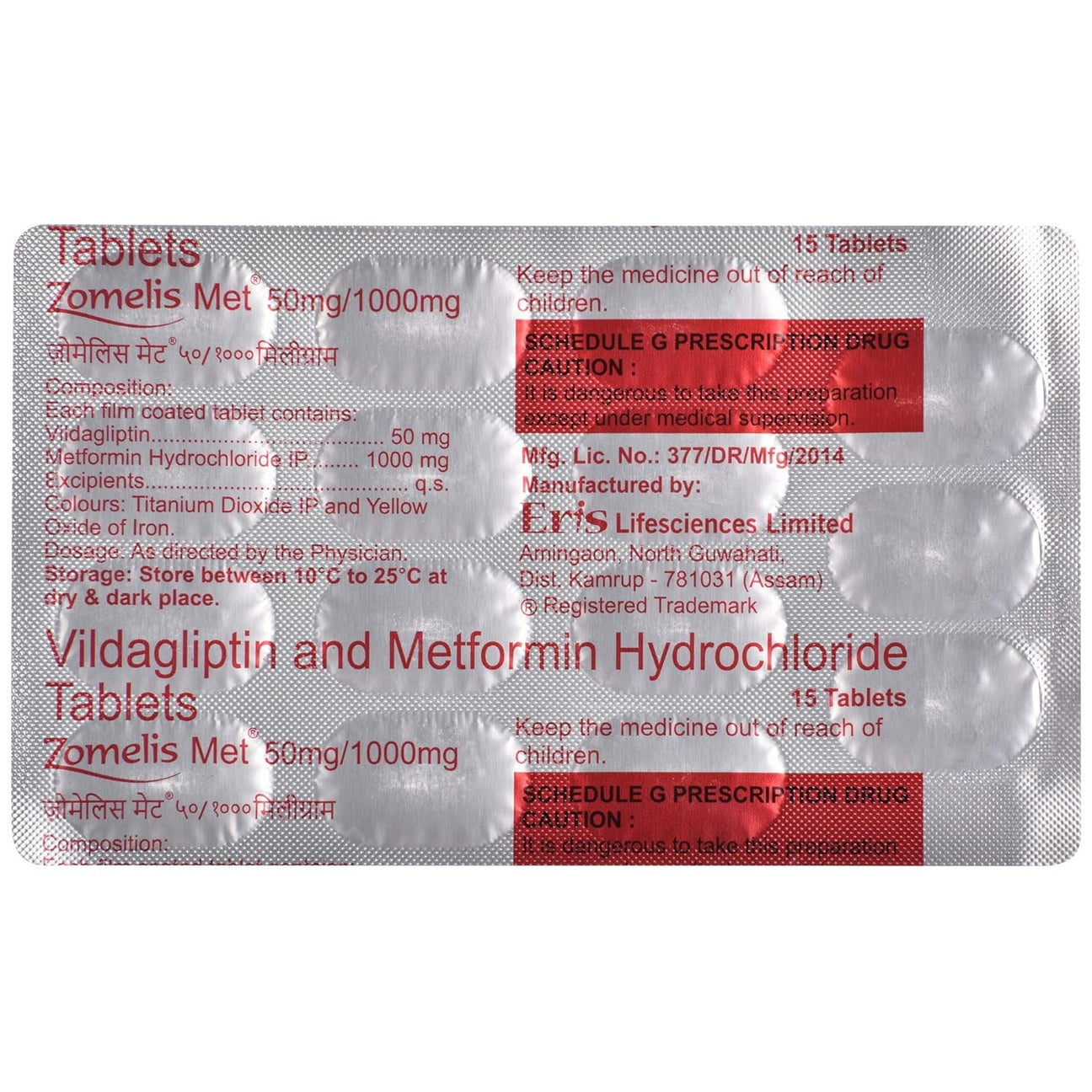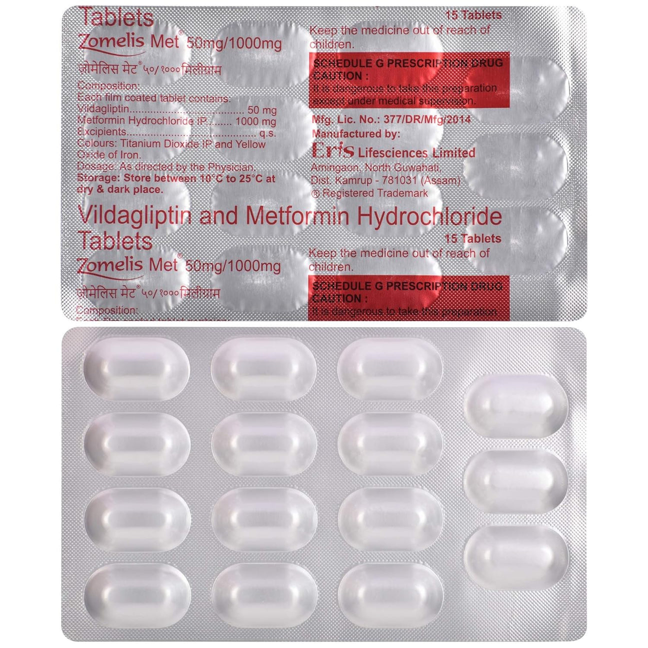 Zomelis Met 50mg/1000mg Tablet is a combination of two antidiabetic medicines that work together to improve insulin efficiency, lower glucose level and control diabetes long-term.